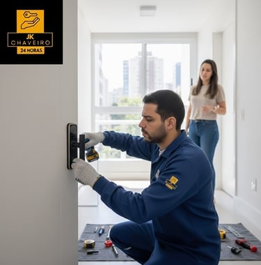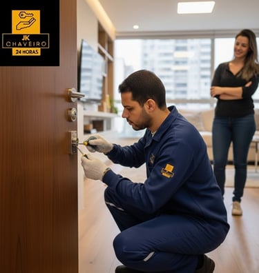 A JK Chaveiro 24 Horas oferece serviços de abertura de portas, cópias de chaves e instalação de fechaduras eletrônicas com qualidade e preço justo.